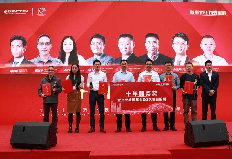 仪式上,移远还向8位员工颁发了十年服务奖,感谢大家十年如一日的支持肯定和倾心付出。