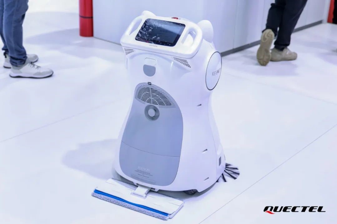在现场,来自擎朗的商用清洁机器人终端C30充分展示了科技赋予生活的便捷。该终端内置移远4G模组EC20,可实现用户远程操控、智能避障、IoT联动自主作业等智能化功能,尤其适用于酒店、写字楼、医院、学校、综合楼宇等室内场所。