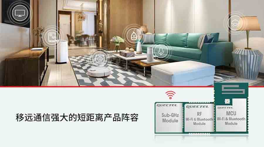 作为全球领先的物联网整体解决方案供应商,移远通信紧跟短距离技术的发展,布局了丰富的模组产品,其RF Wi-Fi/蓝牙模组覆盖Wi-Fi 4/5/6/6E/7,MCU Wi-Fi/蓝牙模组覆盖Wi-Fi 4/6。这些模组涵盖消费级、工规级和车规级产品,具备广泛的兼容性和强大的适配性,已深入到家庭、商业、车联网、智慧能源等多个场景中。此外,移远通信还立足市场需求,推出了Wi-Fi HaLow模组、LoRa模组等Sub-GHz模组,进一步丰富了移远短距离产品阵容。