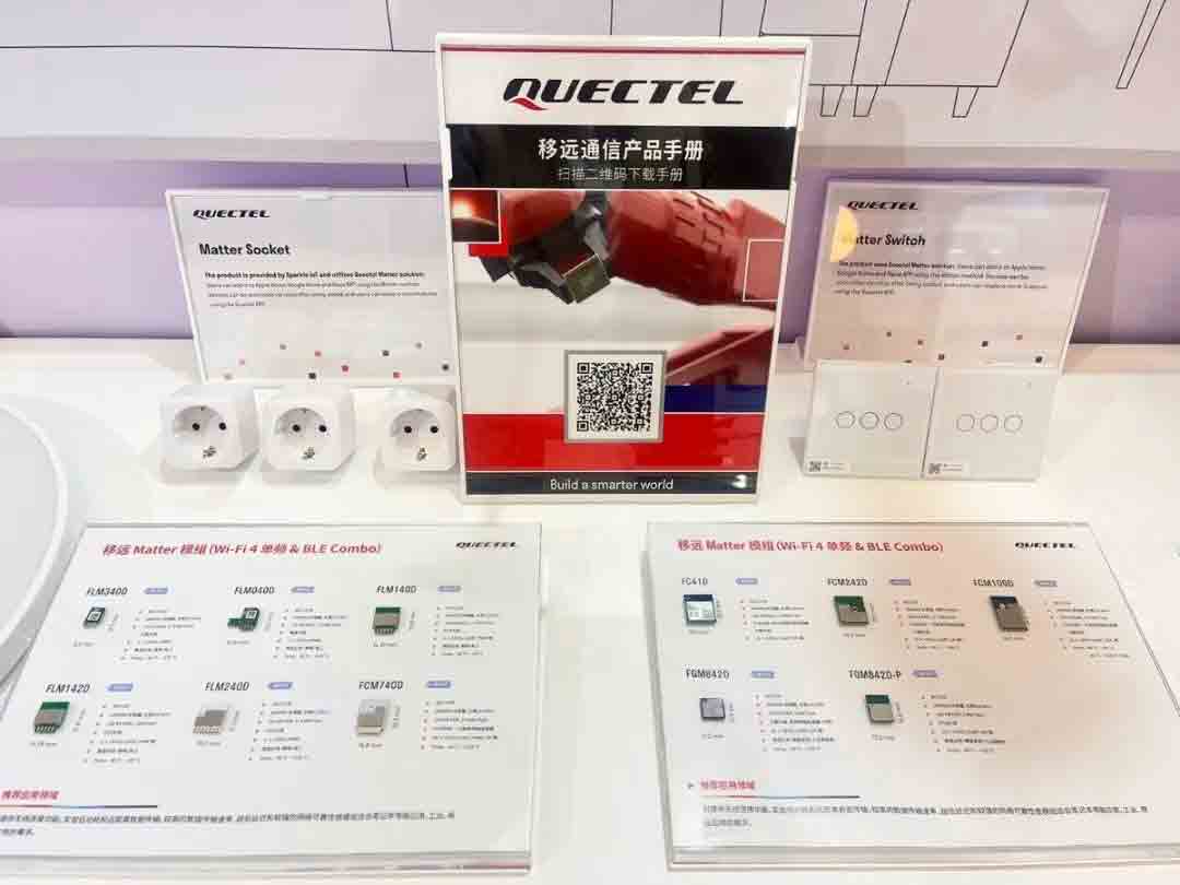 作为全球领先的物联网整体解决方案供应商,移远通信再次亮相,并重点展示了旗下支持Matter协议以及亚马逊ACK ( Alexa Connect Kit ) SDK for Matter方案的Wi-Fi模组、低功耗蓝牙模组系列、基于Matter打造的智能照明和智能电工方案,以及搭载移远产品和方案的多款照明及控制终端,极大彰显了移远通信在智能照明领域的深厚积累,更展现了其在智能家居领域的强大实力。