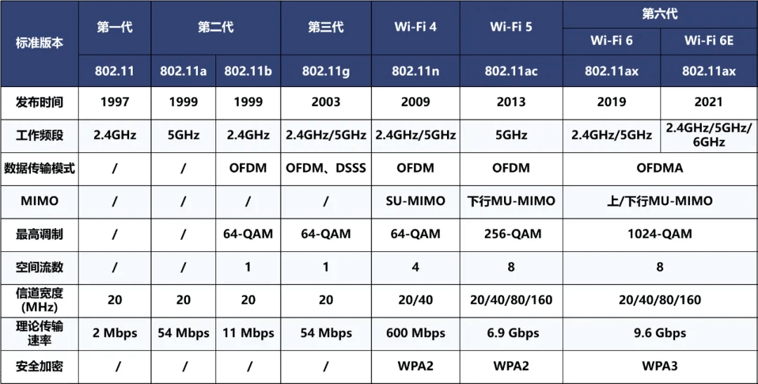 进入21世纪后,以Wi-Fi和蓝牙为代表的短距无线通信技术,借着互联网的东风,获得了飞速发展。Wi-Fi从Wi-Fi 1一路演进到了Wi-Fi 6,而蓝牙也从1.0到了5.0。